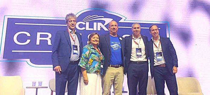 Na abertura, o presidente da CLIA, Marco Ferraz, trouxe dados importantes do segmento, como a estimava de embarque no Brasil, de 750 mil passageiros durante a temporada 2025/2026, que tem início em outubro desse ano; e a projeção de 37 milhões de embarques pelo mundo.